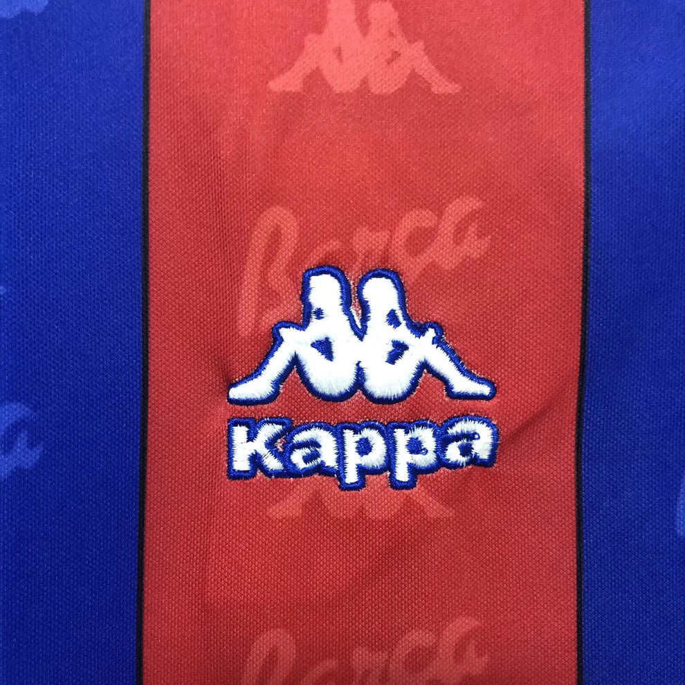 The 1996/97 Barcelona shirt sits right in that raw, restless era where everything felt a little unpolished but dangerously exciting. Big stripes. Heavy colours. Kappa logos running wild like they owned the place. Football shirts didn’t whisper back then, they spoke over you.