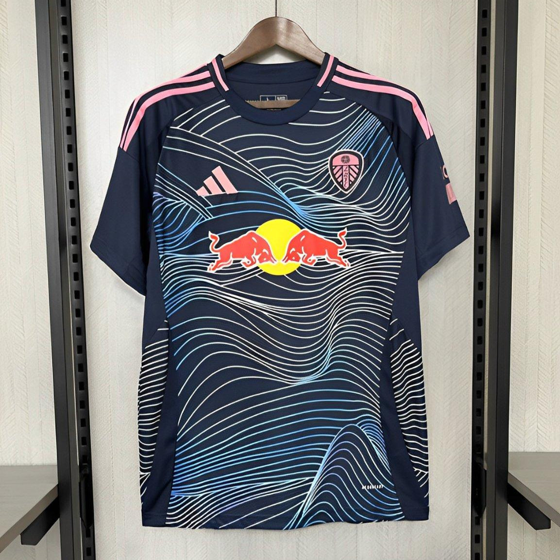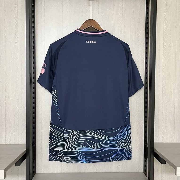 Bold, modern, and unmistakably Leeds. The 2025/26 Third Kit breaks from tradition with a striking deep navy base, brought to life by vibrant coral and sky blue accents across the collar, sleeves, and club detailing. The all-over pattern adds a digital edge, giving this shirt a sleek, future-facing energy. Designed for away days and big moments under the lights, this kit reflects the ambition of a side pushing to return to the top flight. A statement jersey for a club that’s never afraid to stand out.