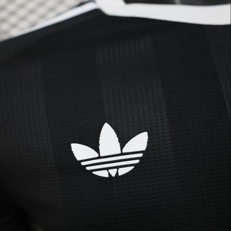 Crafted with lightweight, breathable fabric, it offers comfort and flexibility whether worn on the pitch or styled casually. The white adidas Trefoil and shoulder stripes provide a sharp contrast, while the monochrome Liverpool FC crest adds a refined, contemporary edge. Finished with the Standard Chartered sponsor and clean white collar trim, this piece balances heritage with modern football aesthetics.