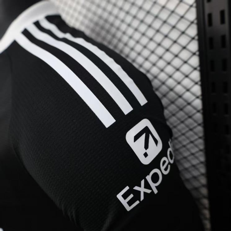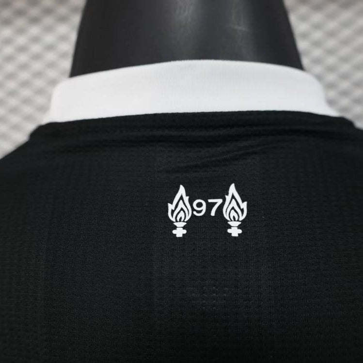 The Liverpool FC 25/26 Third Goalkeeper Jersey delivers a sleek, modern take on matchday performance wear. Finished in a deep black base with subtle tonal striping, this jersey is designed to stand out through detail rather than excess.