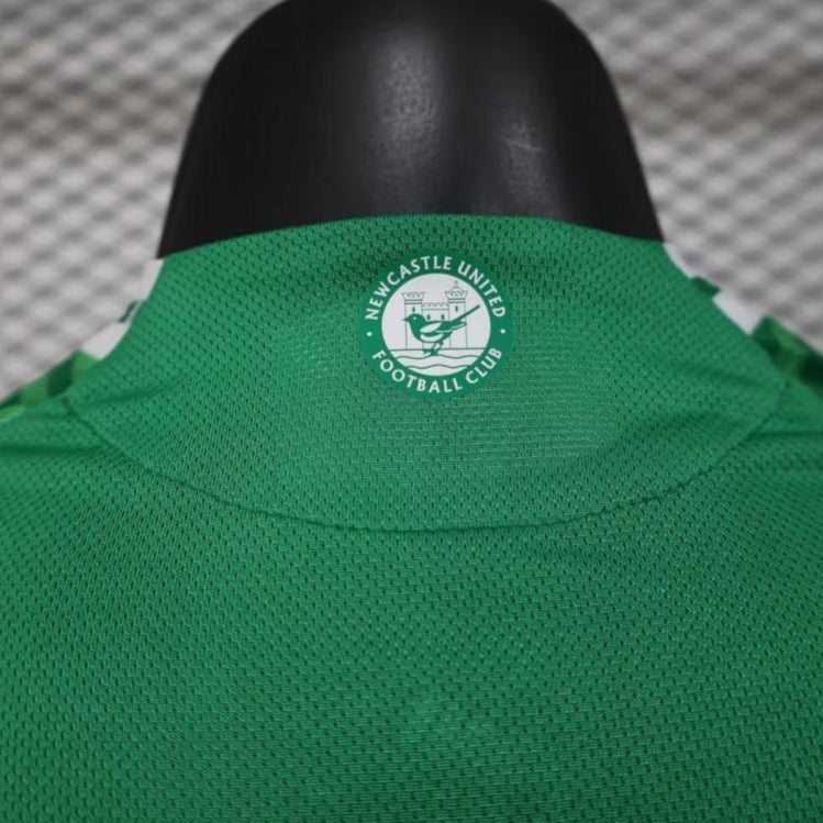 For the 25/26 season, Newcastle turns heads with a bold green away kit that feels both fresh and classic. The striped wave pattern across the front gives the shirt a dynamic energy, while the monochrome club crest and white sponsor detailing keep the look clean and modern.