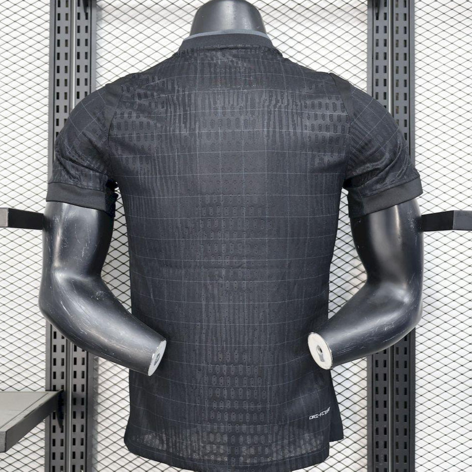 The Spurs go stealth mode for their 25/26 away kit and it’s a cold one. Featuring a blackout grid design with a subtle checkerboard texture, this jersey keeps things clean and modern. The all-black colourway is broken up only by the crisp white Nike Swoosh and cockerel crest, standing out with quiet authority.